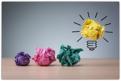 Inspiration concept crumpled paper light bulb metaphor for good idea